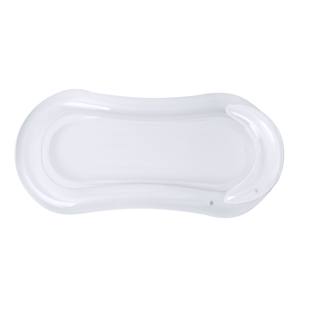 Original cushion made of resistant PVC. Including a comfortable head cushion with two-tone design in transparent and white colours. With strong central mesh in white polyester. Special folding for easy printing. Supplied deflated and in a practical recycled individual bag.