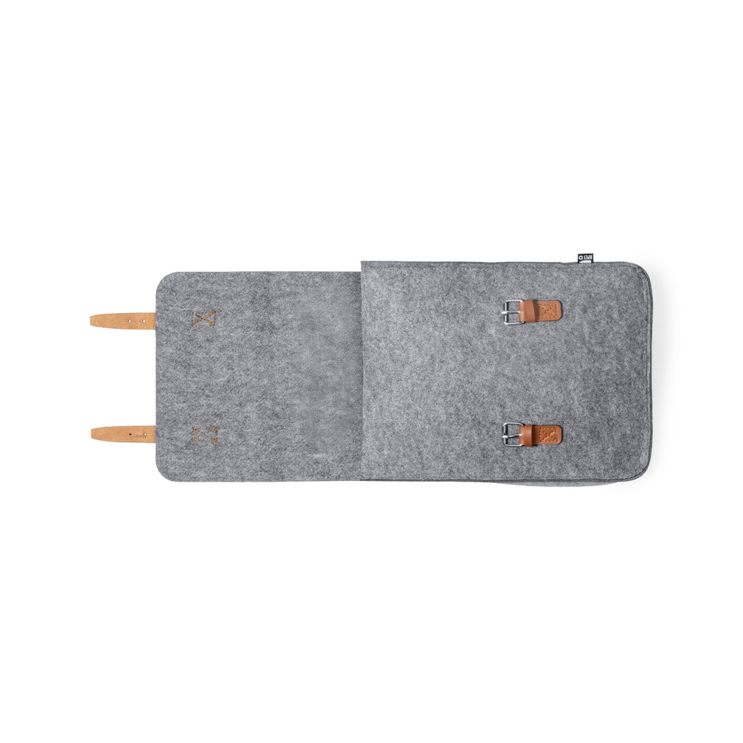 Design backpack made of durable Felt RPET, with closing straps, carrying handle and shoulder straps in PU leather. Large main compartment, flap with adjustable straps and metal buckle closure. With adjustable shoulder straps and outside label with the Felt RPET distinctive.Felt RPET is the result of the combination of the recycling processes of plastic materials along with the millenary technique of felt manufacturing, resulting in an eco-trend material that, in addition to being of recycled origin, also becomes recyclable.