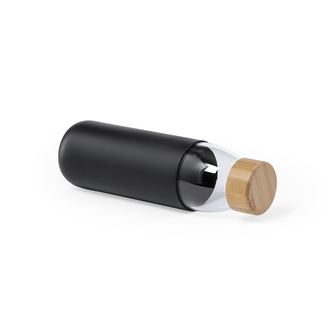 Nature line bottle with 540ml capacity. Body made of body glass, with bamboo screw cap. Including silicone cover and comes in an attractive individual box. This item can only be printed in 1 colour (Black/White).