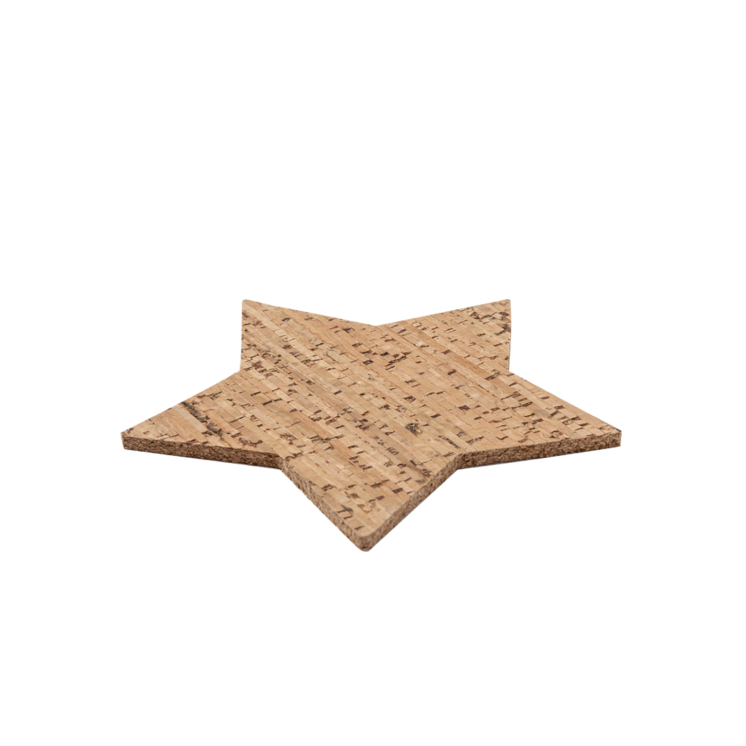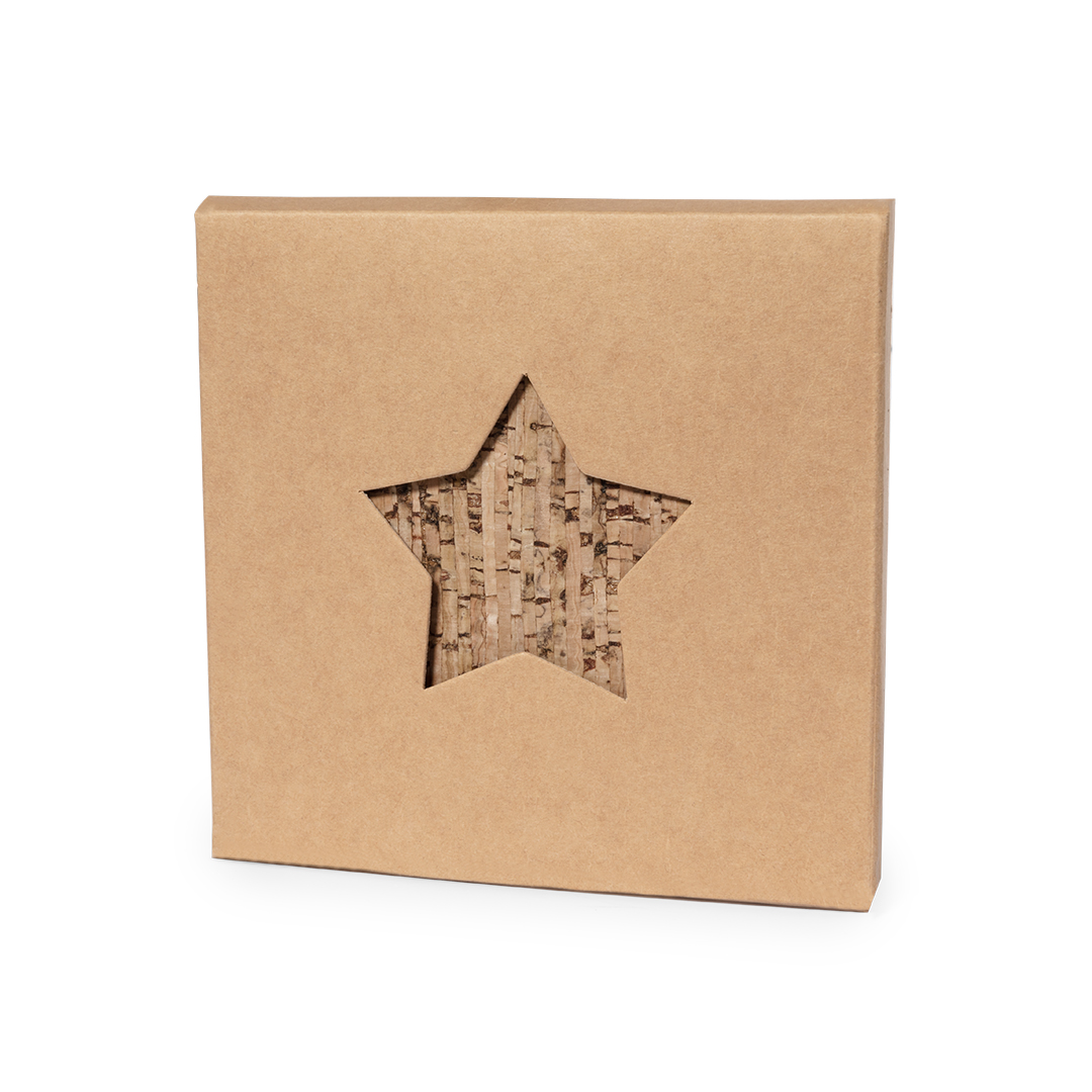Set of 4 star shaped coasters made in natural cork. Set presented in a design cardboard kraft box with die-cut star design.Made with vegetable elements to promote the use of natural raw materials and reduce pollutant emissions.