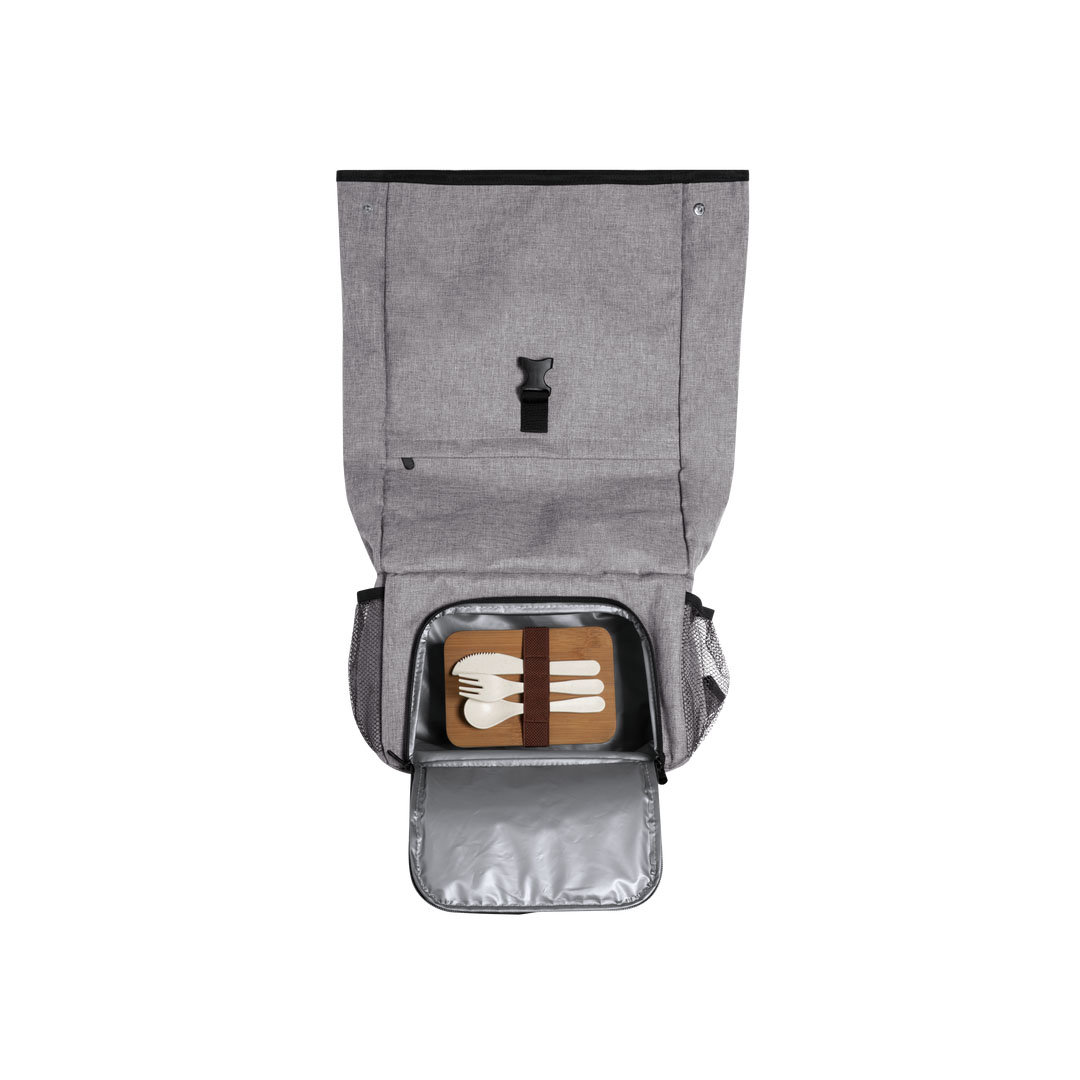 Multipurpose backpack in resistant denim polyester 600D. Urban design, including isothermal compartment with PEVA coating for lunchbox. Main compartment with safety buckle closure and side mesh pockets. Adjustable, padded shoulder straps.