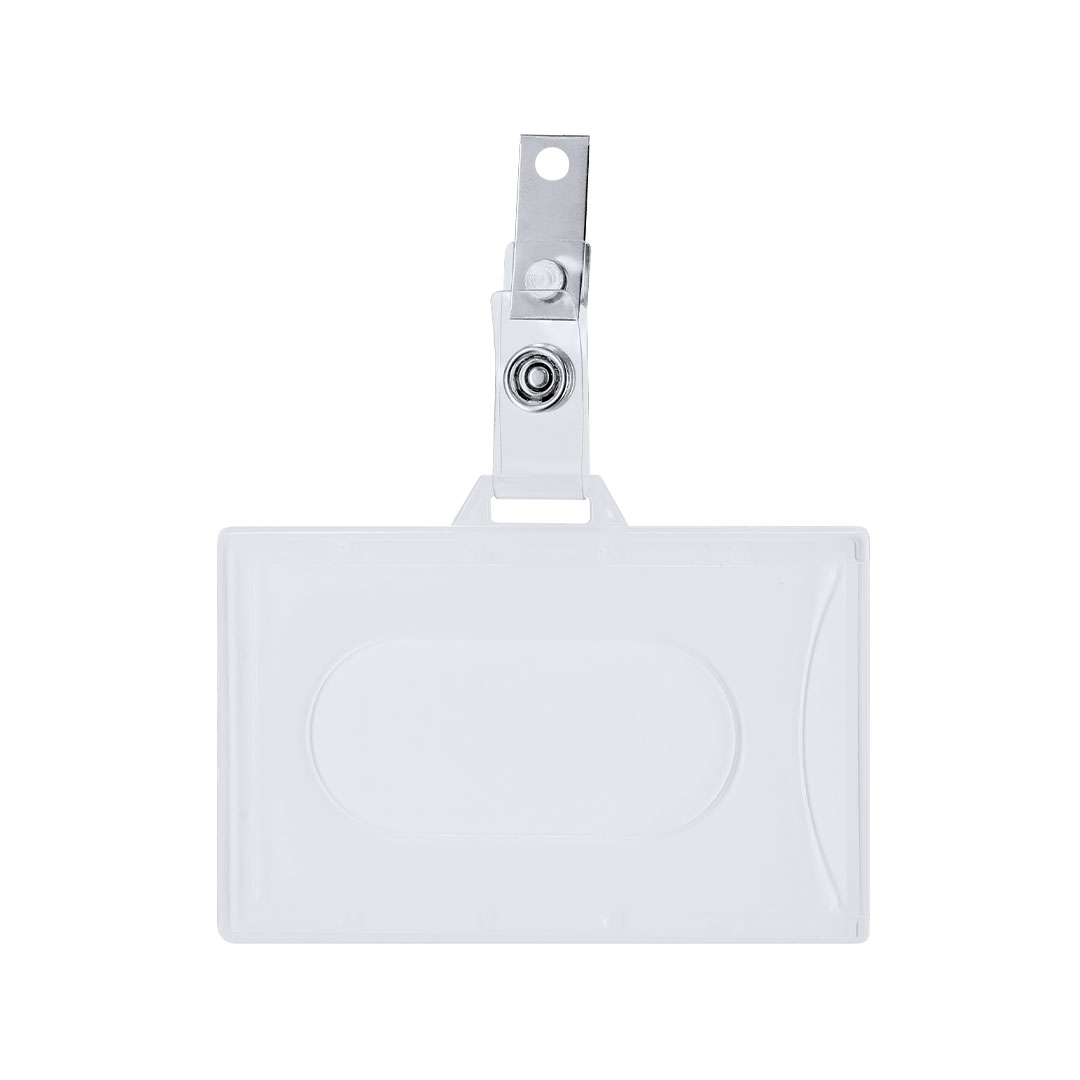 Rigid PS identifier with metal clamp in landscape orientation. Ideal to hang around and show your identification. The closure system is removable and you can use the identifier in conjunction with lanyard.