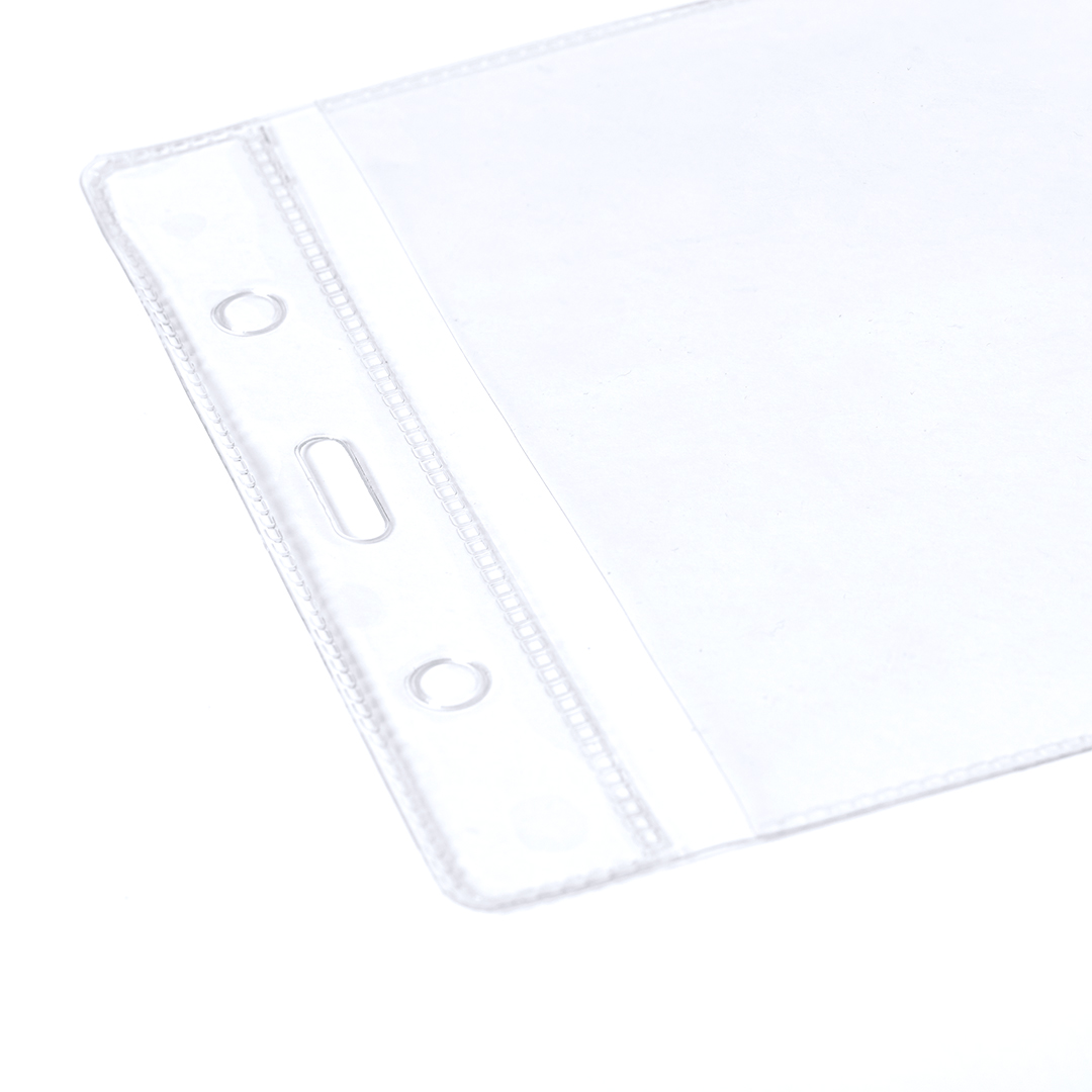 Vertical PVC identifier. Practical badge holder with reinforced top and perforations for both central and side fastening.