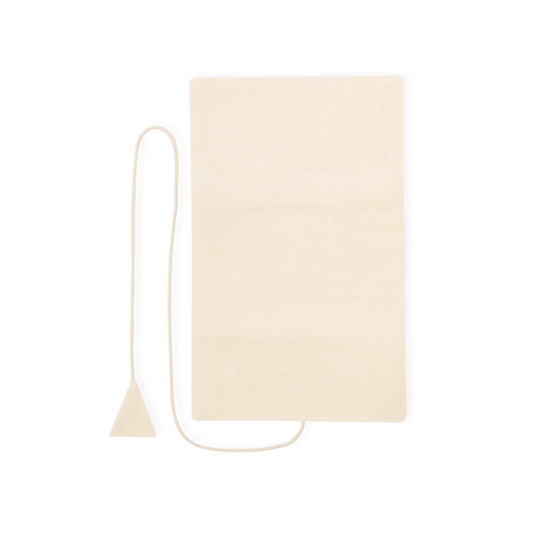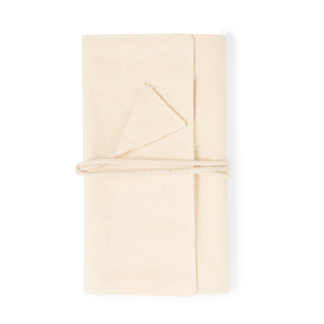 Foldable jewellery box made of cotton, for storing precious personal items. In natural color, with 3 differen parts: upper part with ribbons, central part with pocket and lower part with zipped pocket. It can be folded and held fir mly with its matching cord.