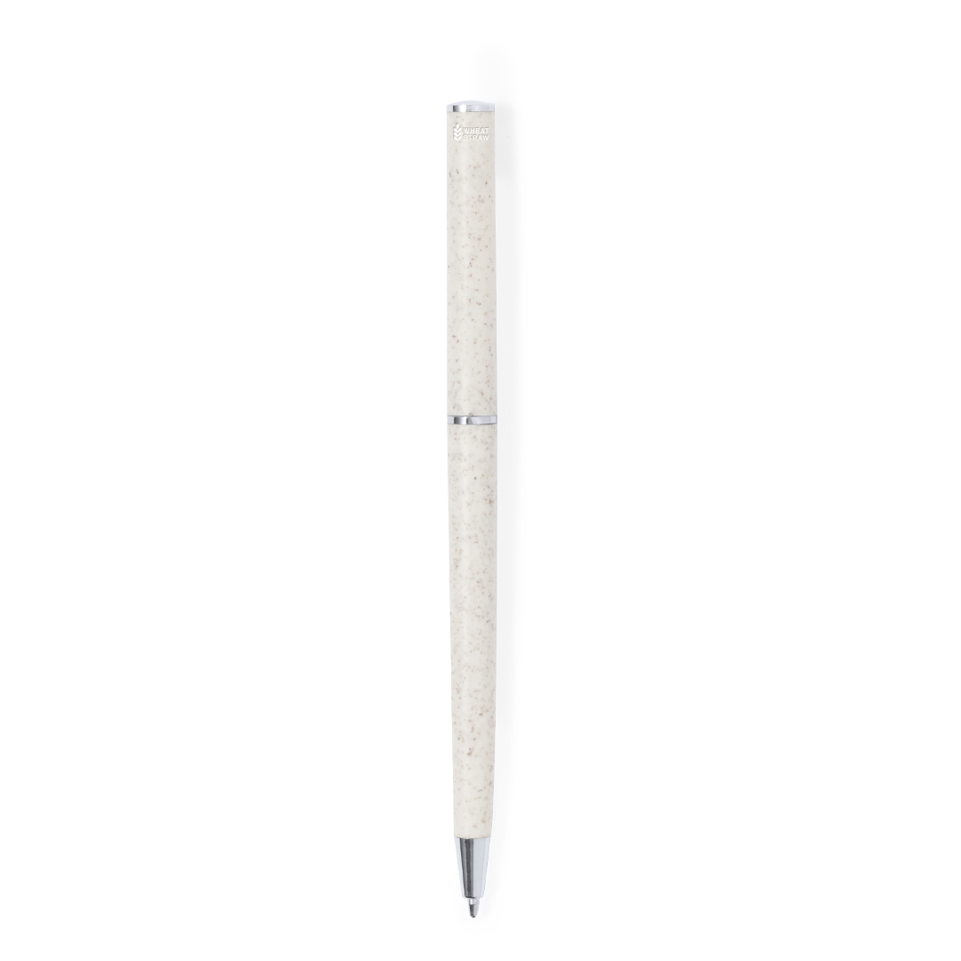 Ball pen with wheat straw barrel. With metal clip and chrome plated fittings, twist mechanism and blue ink. With wheat straw logo and available in a nature colour.Wheat straw promotes the use of natural raw materials, thus reducing pollutant emissions.
