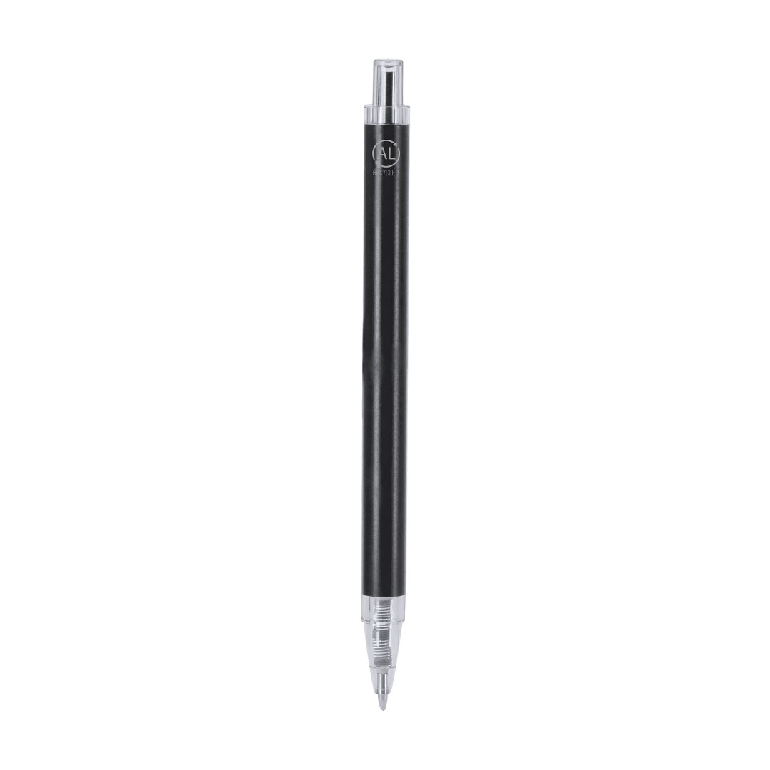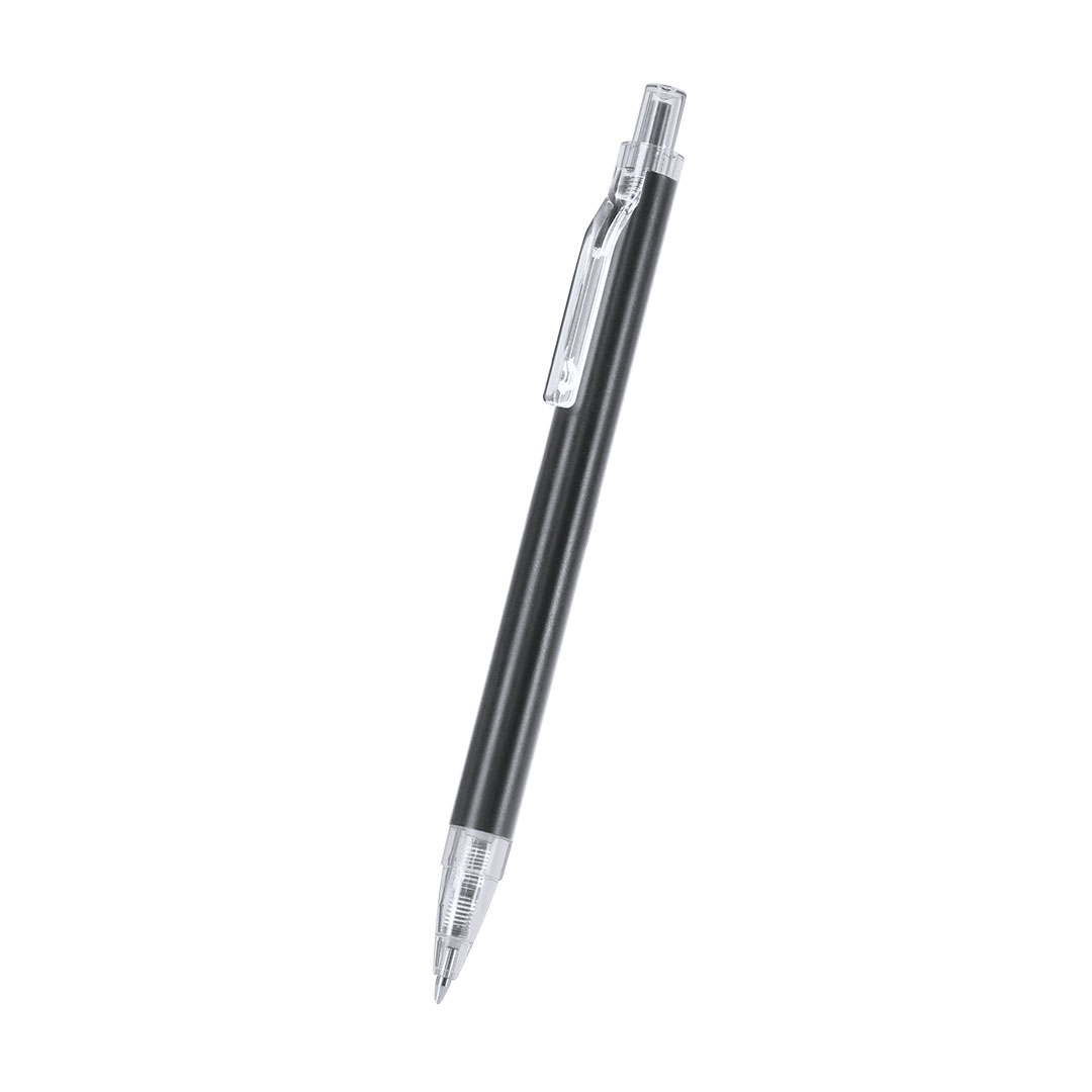 Pen with body in recycled Aluminum. Clip, push button, tip in transparent finish. Jumbo charge and in blue ink. Includes Recycled Aluminum badge.