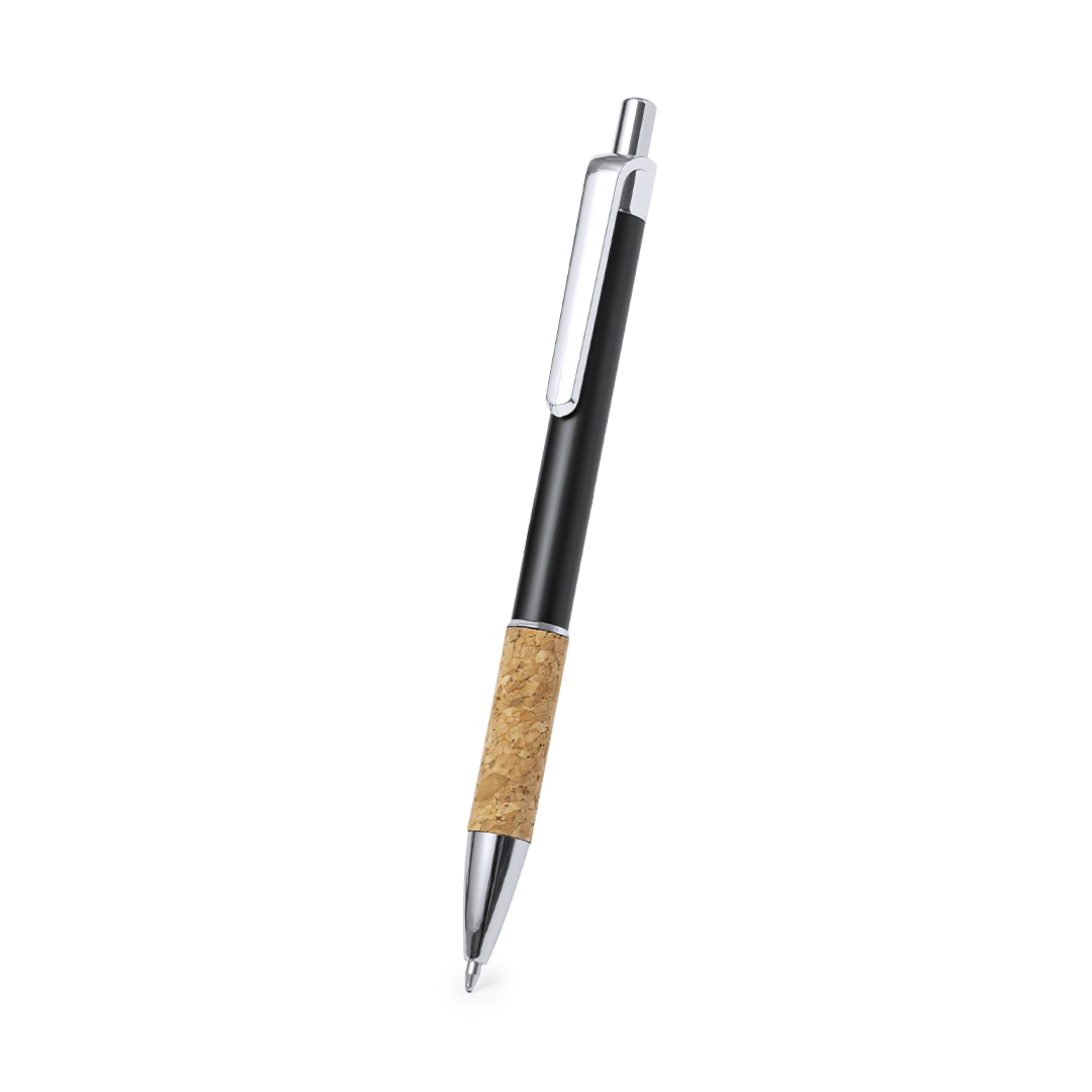 Stylish cork and Aluminium ball pen with push-button mechanism. Robust Aluminium barrel with shiny finish and cork grip, available in a range of distinctive colours. Metal clip and blue ink. Presented in an individual recycled pouch.Made with plant-based elements to promote the use of natural raw materials and reduce polluting emissions.