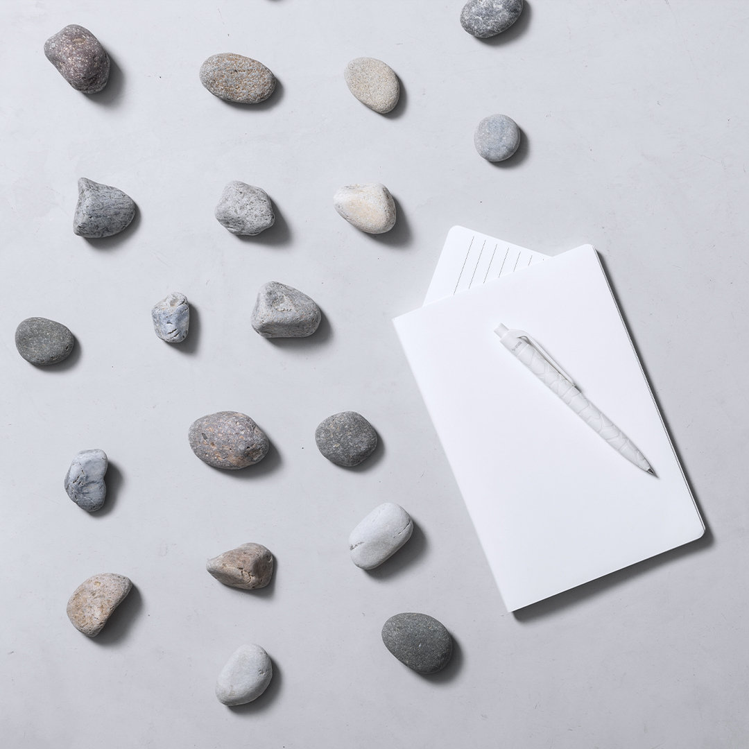 Nature line ball pen with push-button mechanism. Die-cut barrel made from natural stone extracts, contributing to the reduction of plastic use, as well as providing a smooth, durable finish. In white colour, with natural stone logo at the top. Jumbo cartridge and blue ink.