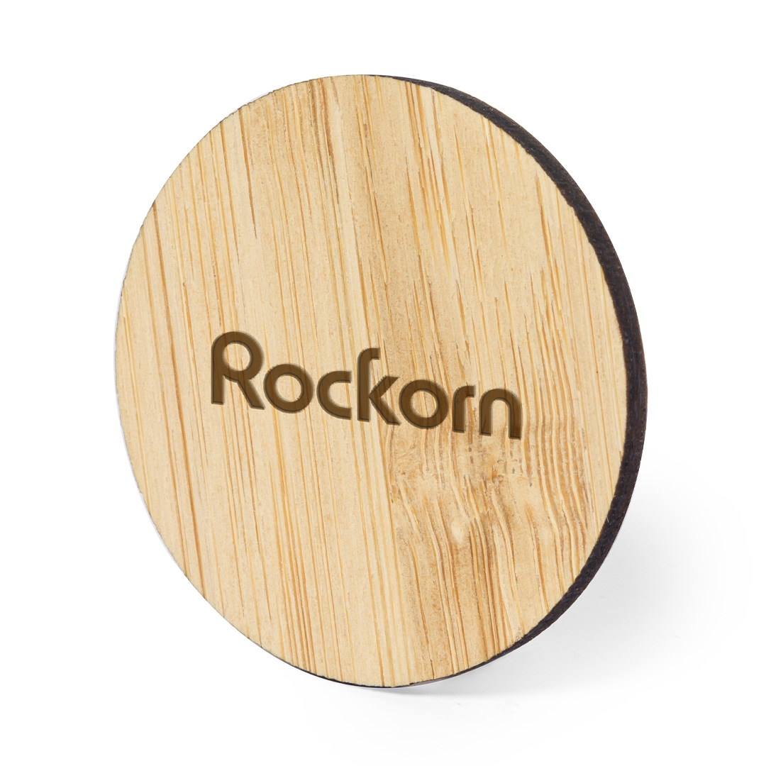 Nature line pin, made of bamboo from natural cuttings. Made in Europe and available in circular and square designs, with magnetic pin.
