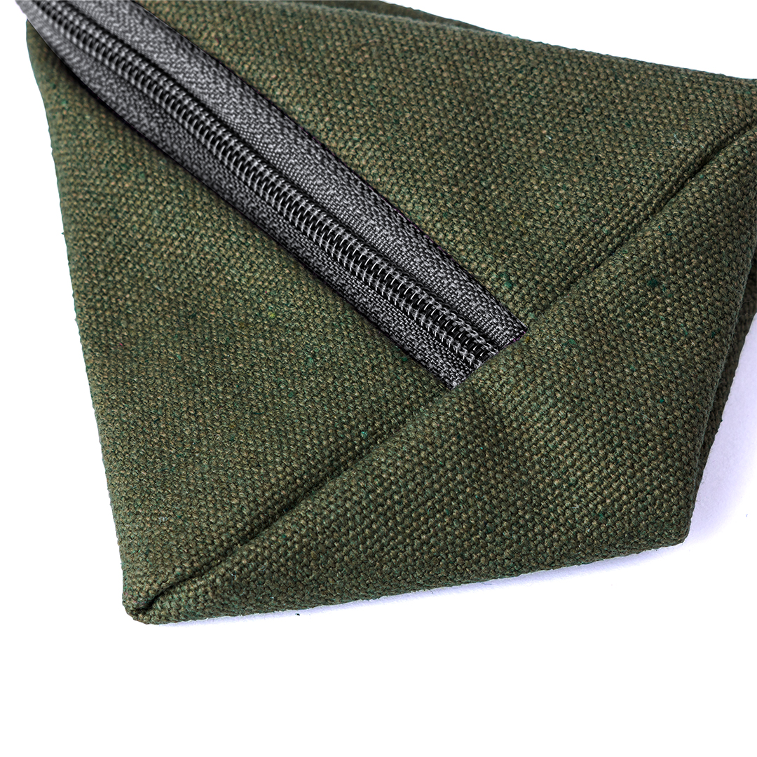 Genuine pyramid shaped coin purse, made of durable canvas. Pocket with zip closure and long carrying strap. Available in different colours.