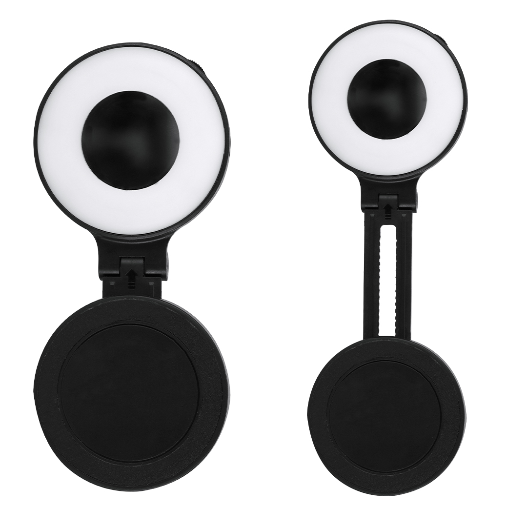 Magnetic LED light ring with smartphone attachment, made of resistant ABS. 24 LEDs, with 3 light modes and adjustable intensity and rechargeable by USB (Type C cable) 450 mAh battery. With extendable stand, ideal for putting it in different positions on your smartphone or computer
