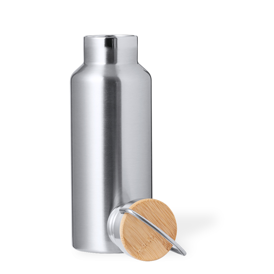 Useful set of thermos flask and thermal tumbler in stainless steel. Including 500 ml capacity stainless steel thermos flask, with safety screw cap, bamboo base and carrying handle. Also comes with a 300 ml capacity stainless steel tumbler with bamboo lid and push-on closure. Presented in a kraft design box.