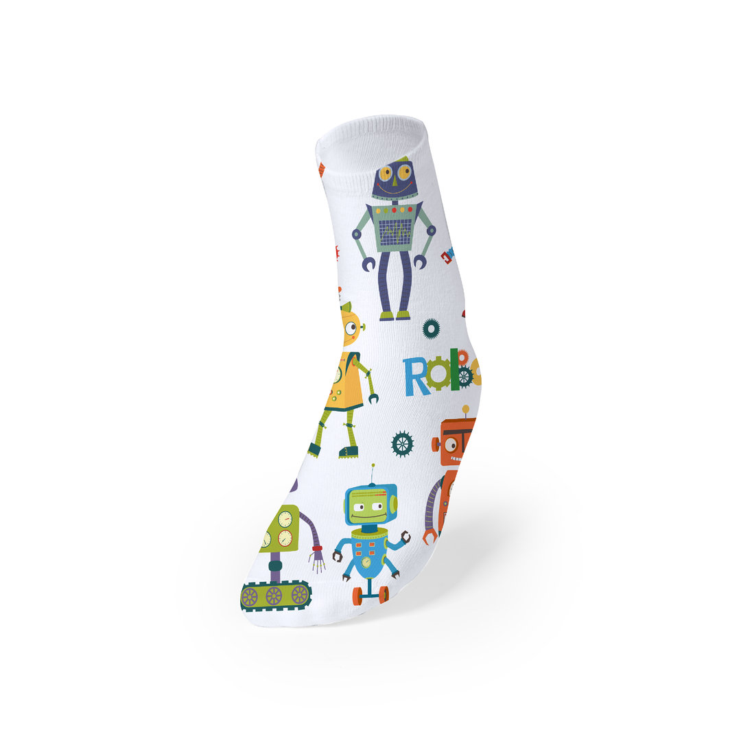 Pair of socks made of white polyester and specially designed for sublimation printing. In size S-M.