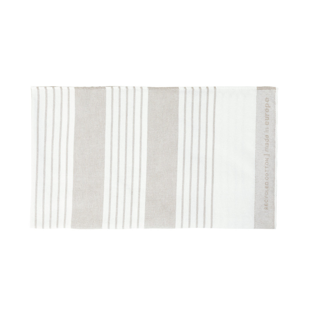 Nature line towel with brown tones. Made in Europe, using a combination of recycled cotton and polyester of 330g/m2. With GRS certification (Global Recycled Standard) confirming the recycled origin of the material used in the manufacture of the product. Size 150 x 80 cm.